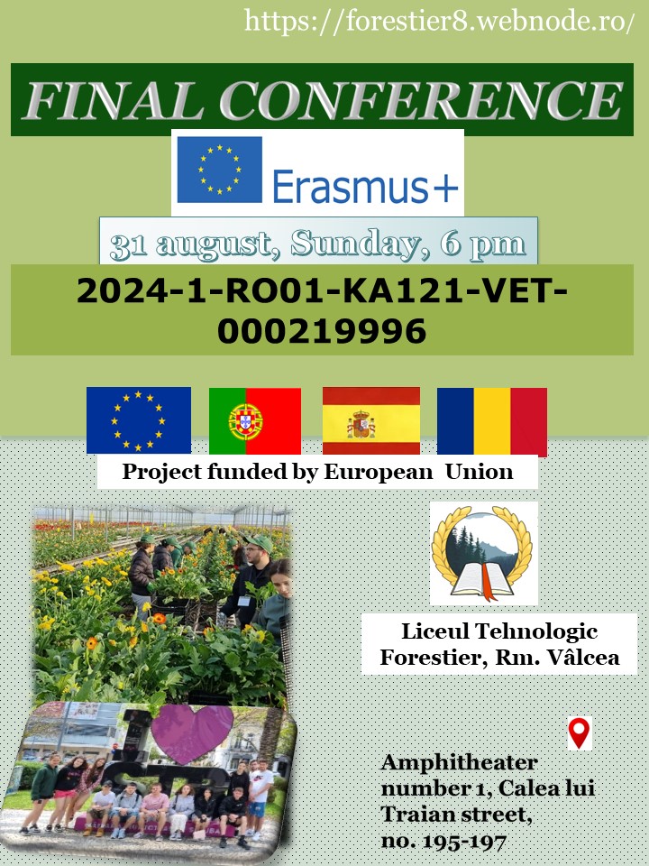 În data de 12.11.2020 a avut loc, la Liceul Tehnologic Forestier din Râmnicu Vâlcea, conferinţa finală a proiectului "Dezvoltarea Competențelor Practice ale Elevilor Pentru Amenajarea Spațiilor Verzi".